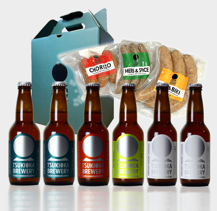 月岡ブルワリーのクラフトビール定番4種6本と3種ソーセージを化粧箱にお詰めする限定ギフトセット!